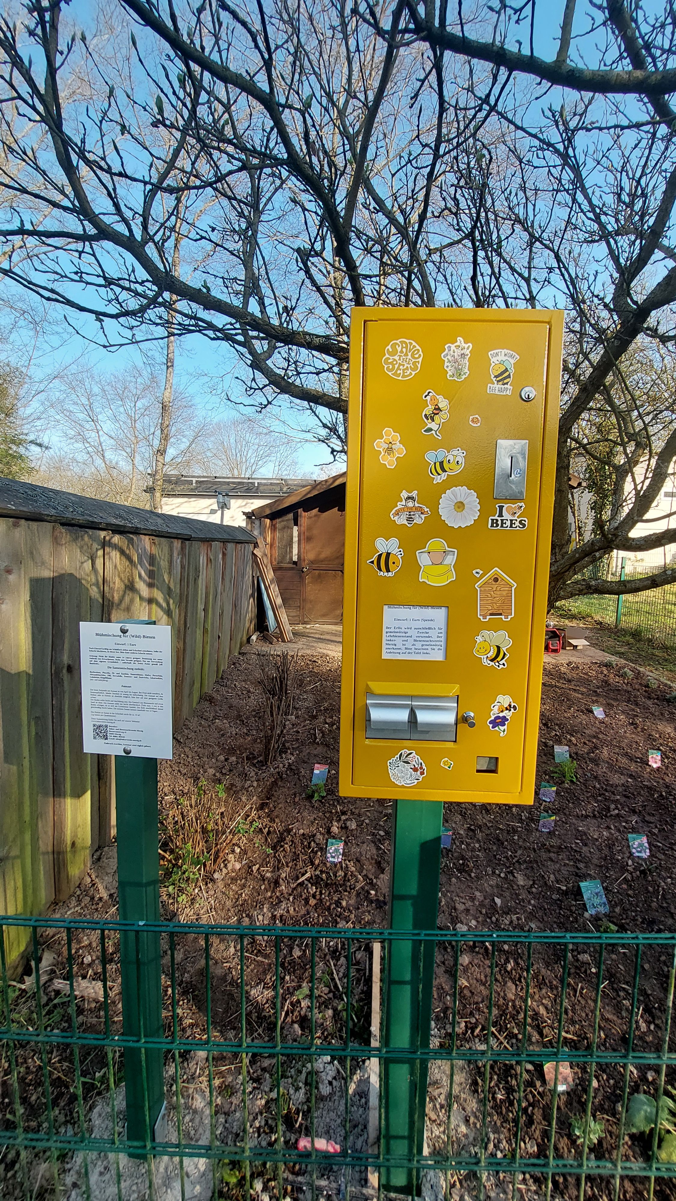Im Frühling 2022 wurde durch den Verein ein Blühsamen-Automat am Lehrbienenstand im Merziger Tierpark aufgestellt. Am Automat kann der Besucher gegen eine Spende von einem Euro eine Schachtel mit Samen für Blühpflanzen erhalten. Hierbei sind insbesondere für (Wild-)Bienen wichtige Nutzpflanzen, die Pollen und Nektar liefern, enthalten. Die Samen können anschließend im eigenen Garten oder auf dem Balkon (z.B. im Kübel) gepflanzt werden. Schon bald werden die ersten Pflanzen keimen und sehr bald darauf wird es sicherlich auch die ersten summenden Besucher geben. Der Inhalt der Schachtel (10g) reicht für ca. 10 qm² Gartenfläche.