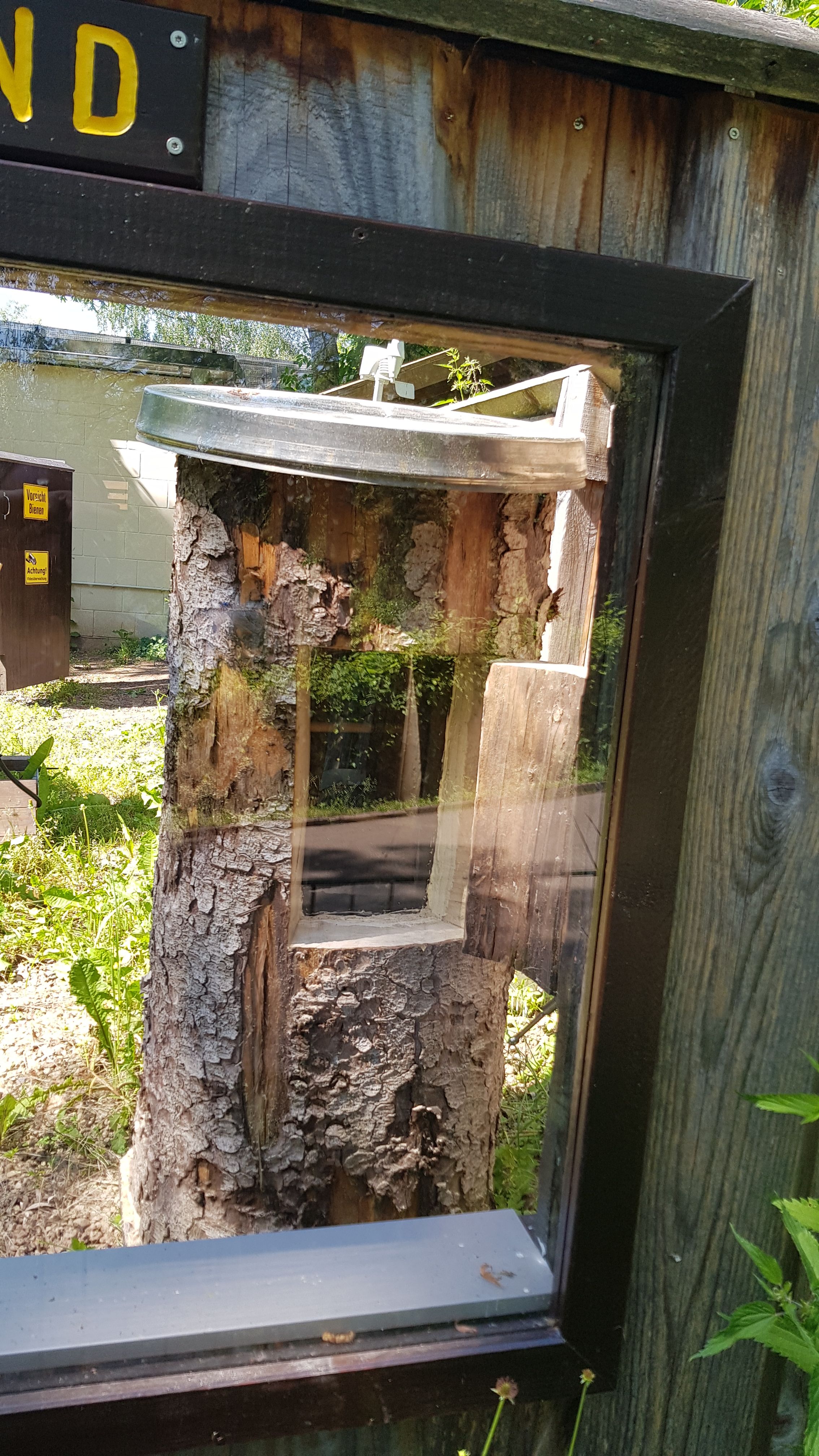 Die Tür der Klotzbeute wurde bereits mal von Besuchern geöffnet.