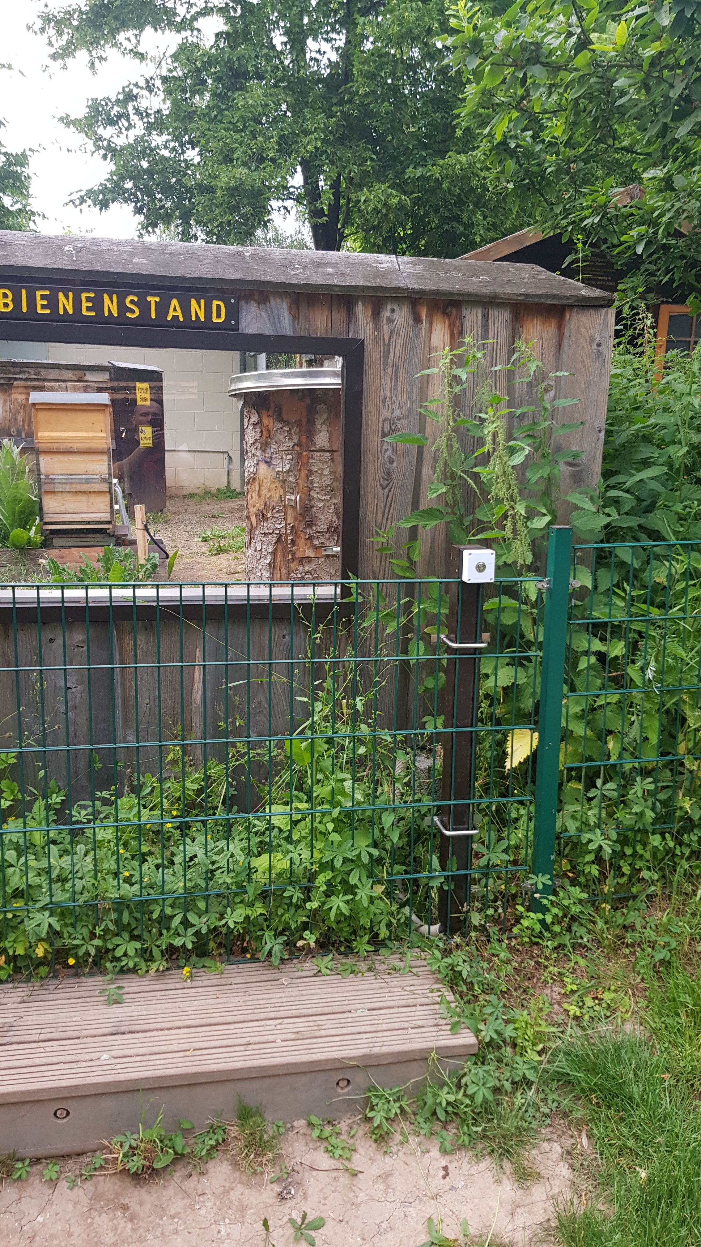 Zum Sommer 2020 wurde eine Klotzbeute am Lehrbienenstand aufgebaut. Hierbei handelt es sich um einen natürlichen Lebensraum der Bienen innerhalb eines hohlen Baumstamms. Auf diese Weise imkerten bereits schon unsere Vorfahren, so wurde eine in Berlin ausgegrabene antike Klotzbeute auf ca. 1080 vor Christus datiert. Diese Art der Imkerei ist somit mindestens rund 3000 Jahre alt. Die Klotzbeute wurde u.a. mit einem Temperatursensor im Brutraum sowie einem kleinen Fenster ausgestattet. Besuchern ist es möglich, das Fenster über einen Druckknopf am Lehrbienenstand für 2 Minuten zur Beobachtung zu öffnen. Dies ist nur möglich, wenn dies innerhalb der letzten 15 Minuten nicht bereits ausgelöst wurde (um Stress bei den Bienen zu vermeiden).