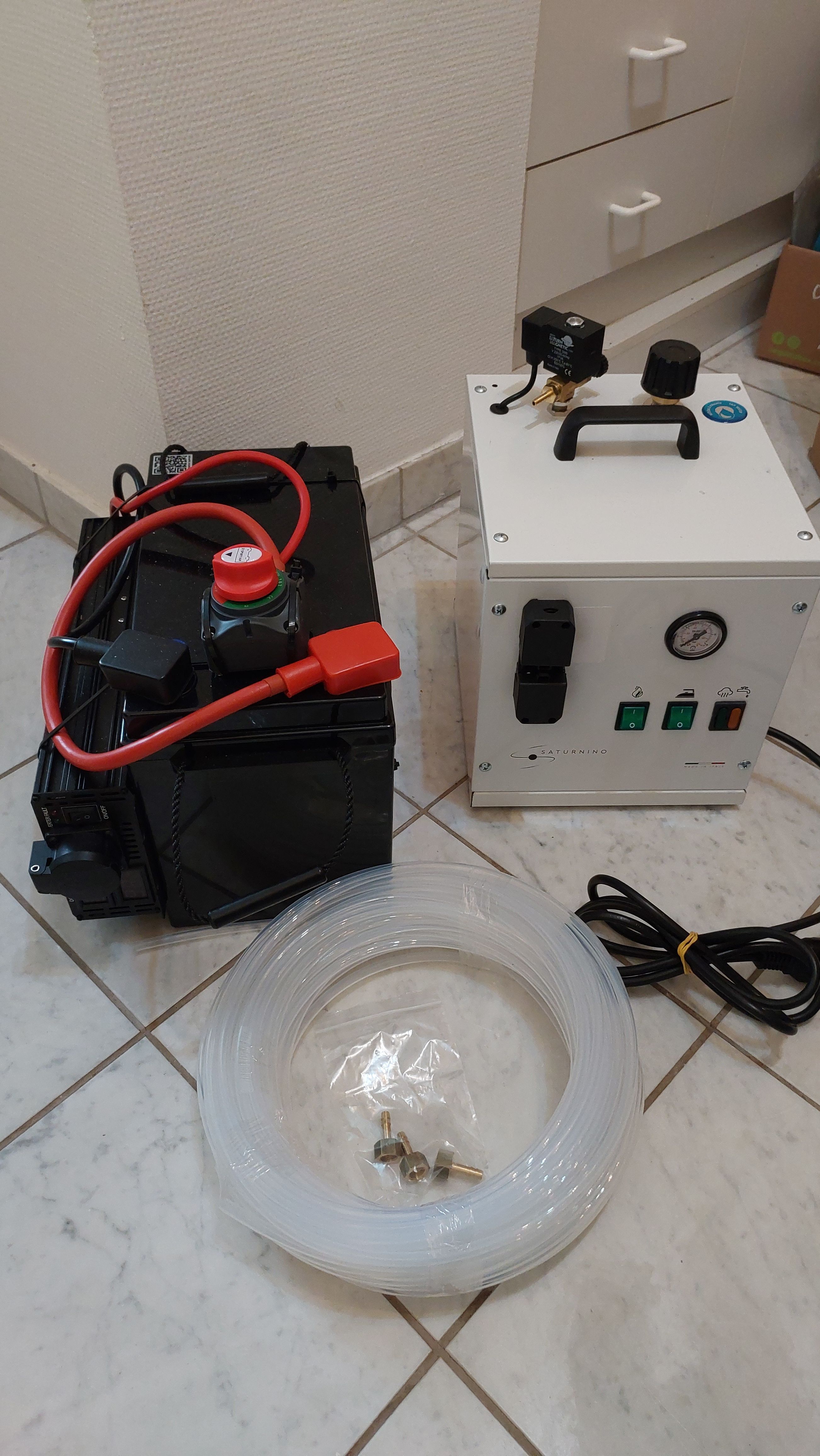 - Mit 25kg relativ schwer (Akku/Inverter + Dampferzeuger), hier ist ein Trolley für längere Wege empfehlenswert